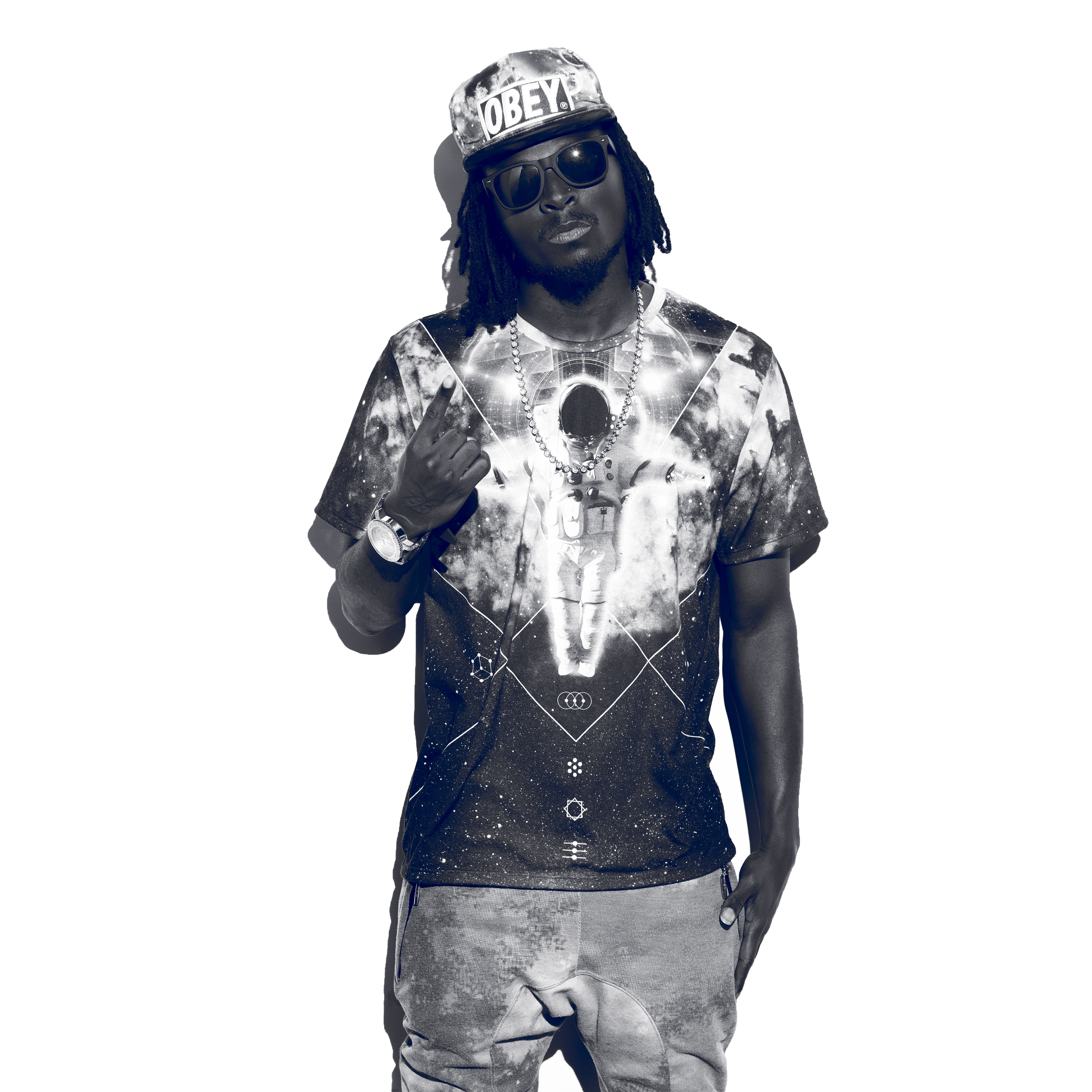 He wanted to get some shots for his new album cover. So we ended up going with something super clean on white. I hard boxed the light so I could get some super crisp shadows. I love the contrast in these shots. And his outfit was on point. The colors were great. I really liked the way they contrasted with the simple white background.