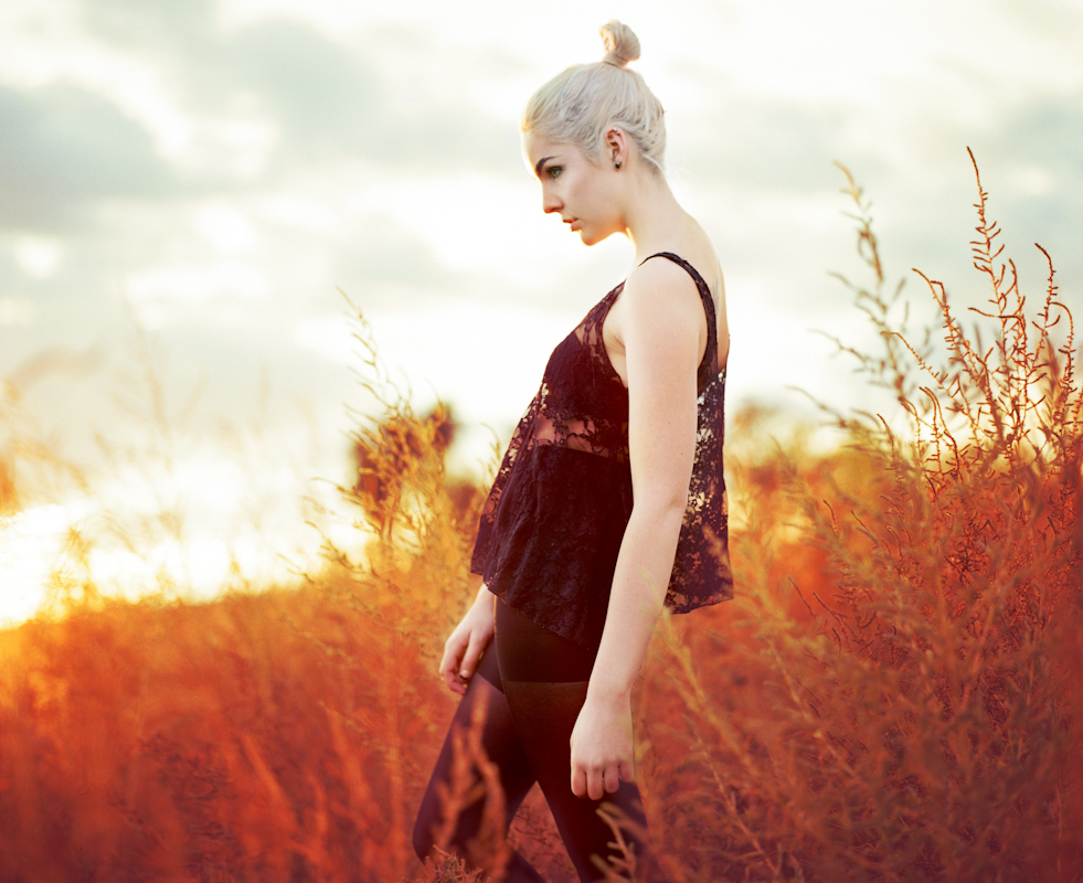 The post work on this shot was pretty simple, but I used a gradient map to make that grassland go that vibrant orange. I wanted it to look almost like it was on fire, being lit up by the sun. Lorin has such pale skin, I really loved the contrast of her with that backdrop. I just realized I actually shot these 2 years ago. That’s how old these are, and how behind on posting up all my work on my blog I am.