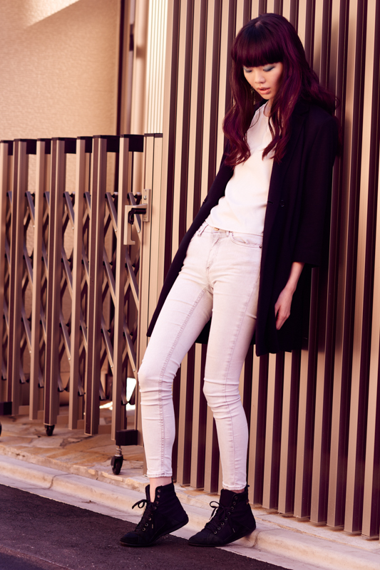 For the shoot we walked all around Shinjuku, finding cool locations that had a color scheme that would compliment the kind of clothes we had in this shoot. These first 2 shots were some of my favorite, as I thought the clothes, the light, the background, and the model all worked so well together. This perfect harmony. Not like my work is perfect, there’s still things I could improve on these pictures, but I was certainly happy with them.
